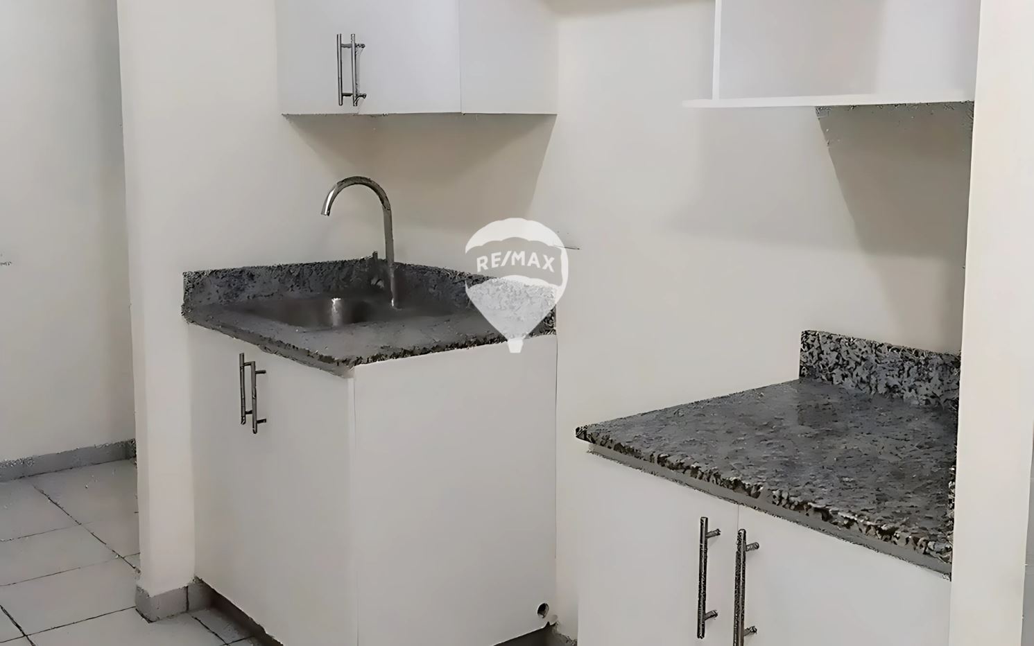 Cocina moderna con alacenas empotradas y a piso, pensadas para mantener una estética limpia y libre de cables visibles, con mueble bajo el lavaplatos que facilita la instalación del gas propano..