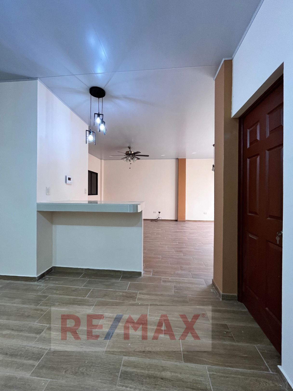 Concepto abierto, sala, comedor y cocina con su respectivo pantry y  extractor de olores.