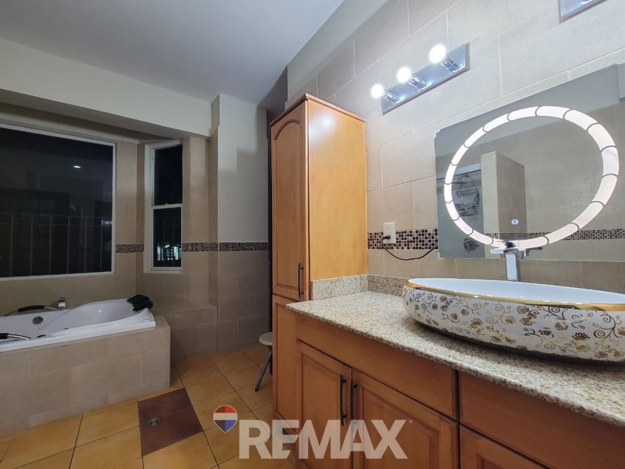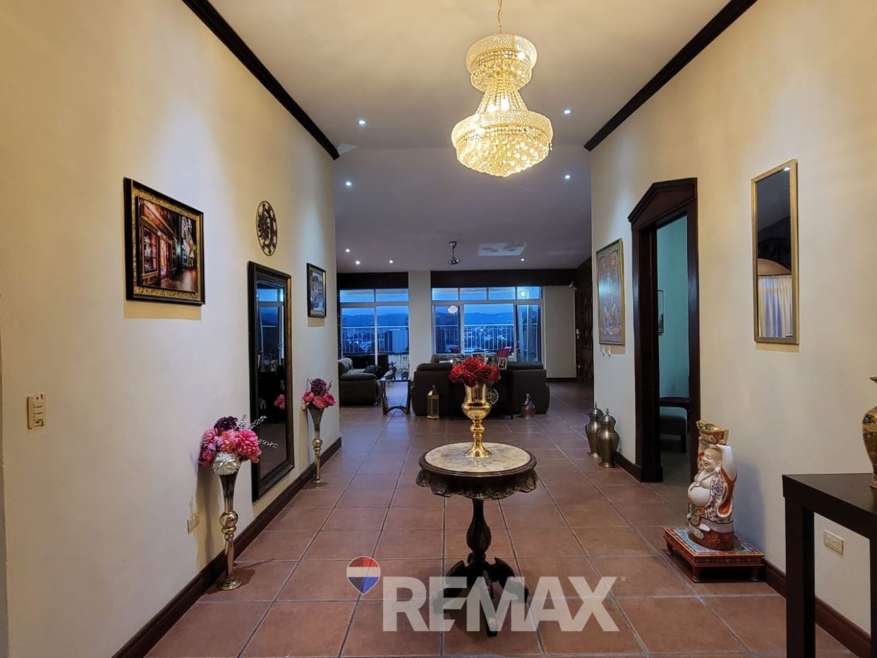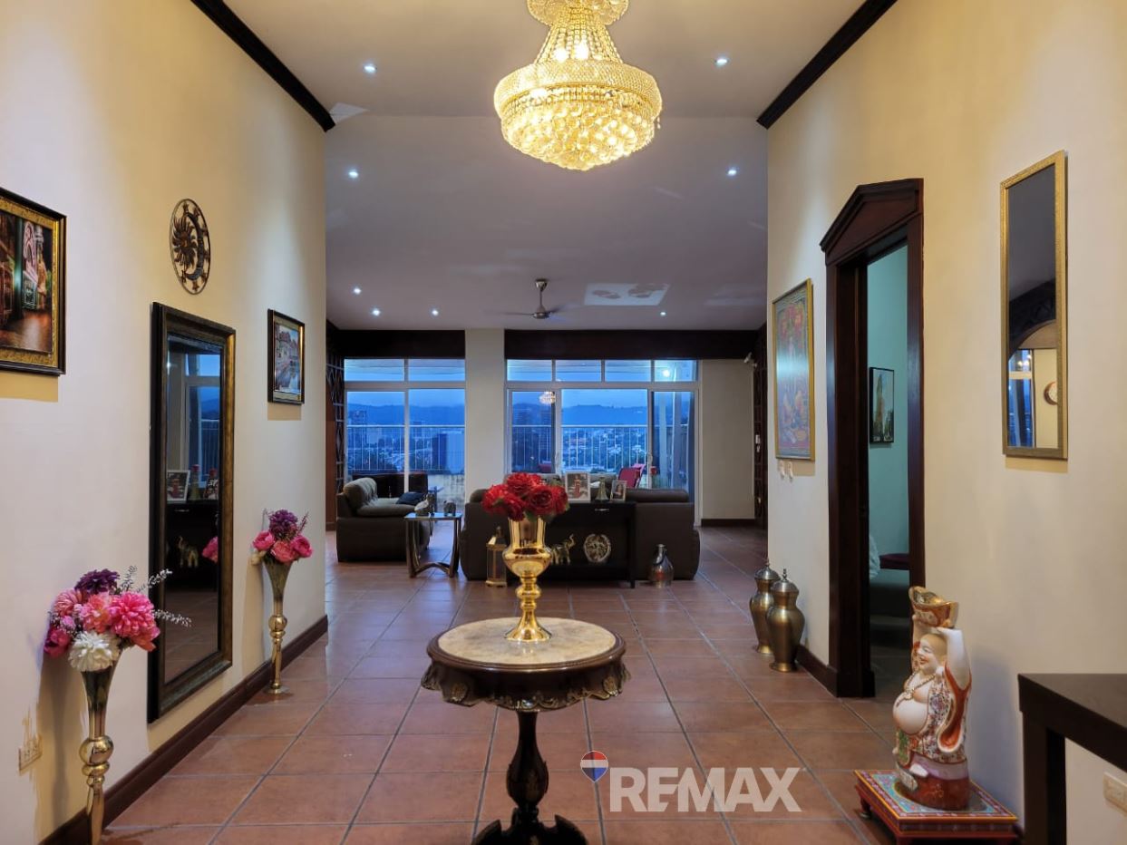 Consta de: Antesala, Sala Principal, Comedor, Terraza panorámica con bella vista a la ciudad, Cocina con barra desayunadora y top de granito, Baño Social, Habitación de usos múltiples, Habitación Master con walk in closet y baño con Jacuzzi, Habitaciones Junior 1 y 2 comparten baño con Jacuzzi, Área de servicio completa.