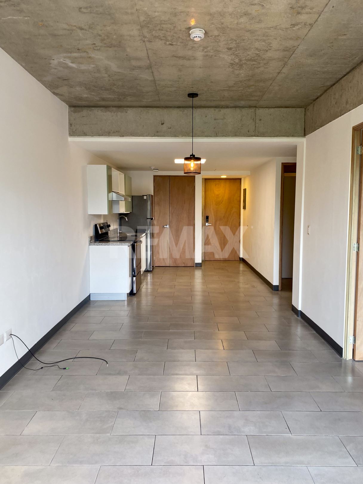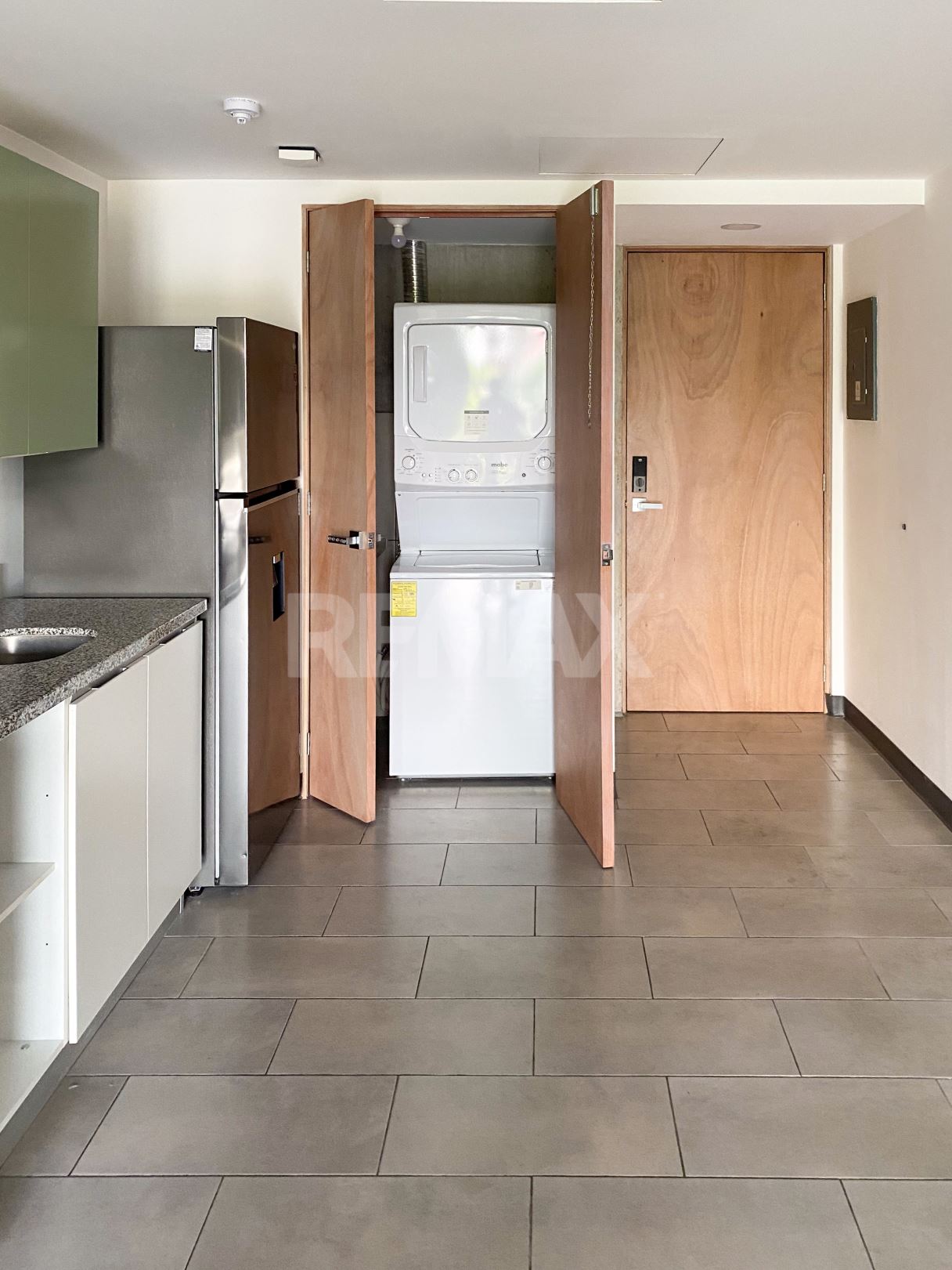 Cocina concepto abierto equipada con Línea Blanca y pantrie.