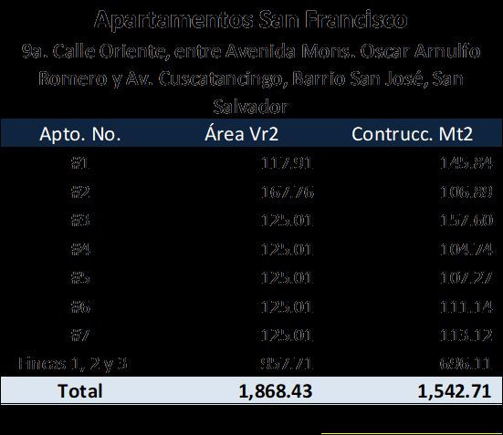 Ponemos a disposición una propiedad inmobiliaria de alto valor estratégico, ideal para inversión, renta y reconversión comercial, ubicada sobre la 9ª Calle Oriente, entre Avenida Mons. Óscar Arnulfo Romero y Avenida Cuscatancingo, en el Barrio San José, San Salvador. El inmueble es ampliamente conocido como “Apartamentos San Francisco”, lo que le confiere reconocimiento y posicionamiento dentro de la zona.