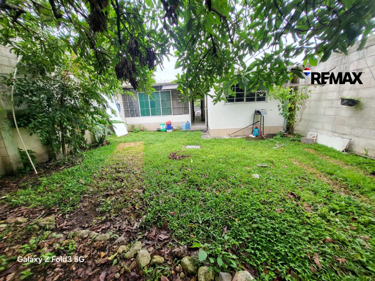 Amplio jardín trasero con árboles frutales, perfecto para compartir en familia o disfrutar de la naturaleza en casa